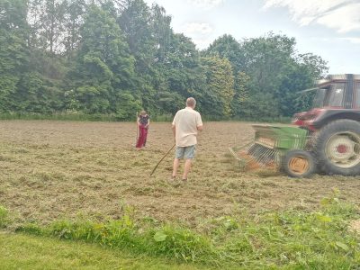 Jörg Müller und Silke Wetzel-Müller waren mit dem Traktor und der Fräse zweimal dabei den Boden vorzubereiten, denn 1200 m² Fläche sind zu groß für Handarbeit.
