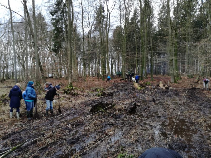 Am Sonntag den 2. Februar 2020 versammelten sich am späten Vormittag knapp 20 Aktive im Wald von Demeter-Bio-Bauer Dirk Kock-Rohwer, um gemeinsam 350 Bäume zu setzen.