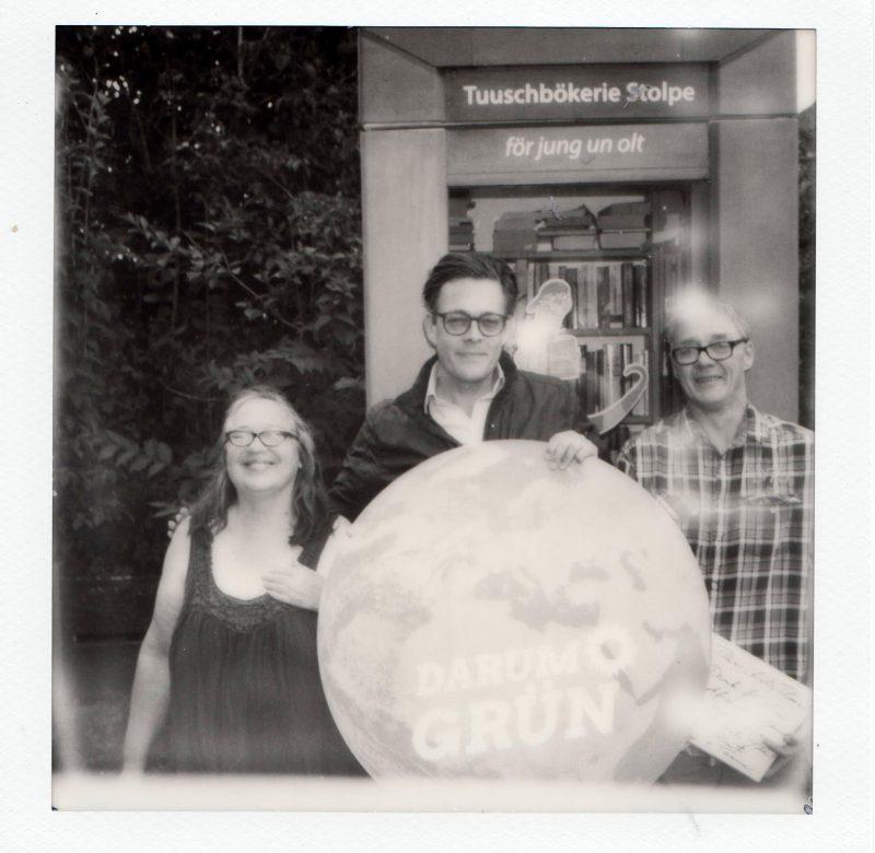 Morgens um 9 Uhr war Abschied angesagt – Konstantin von Notz und sein Team vor der Stolper Bücherzelle