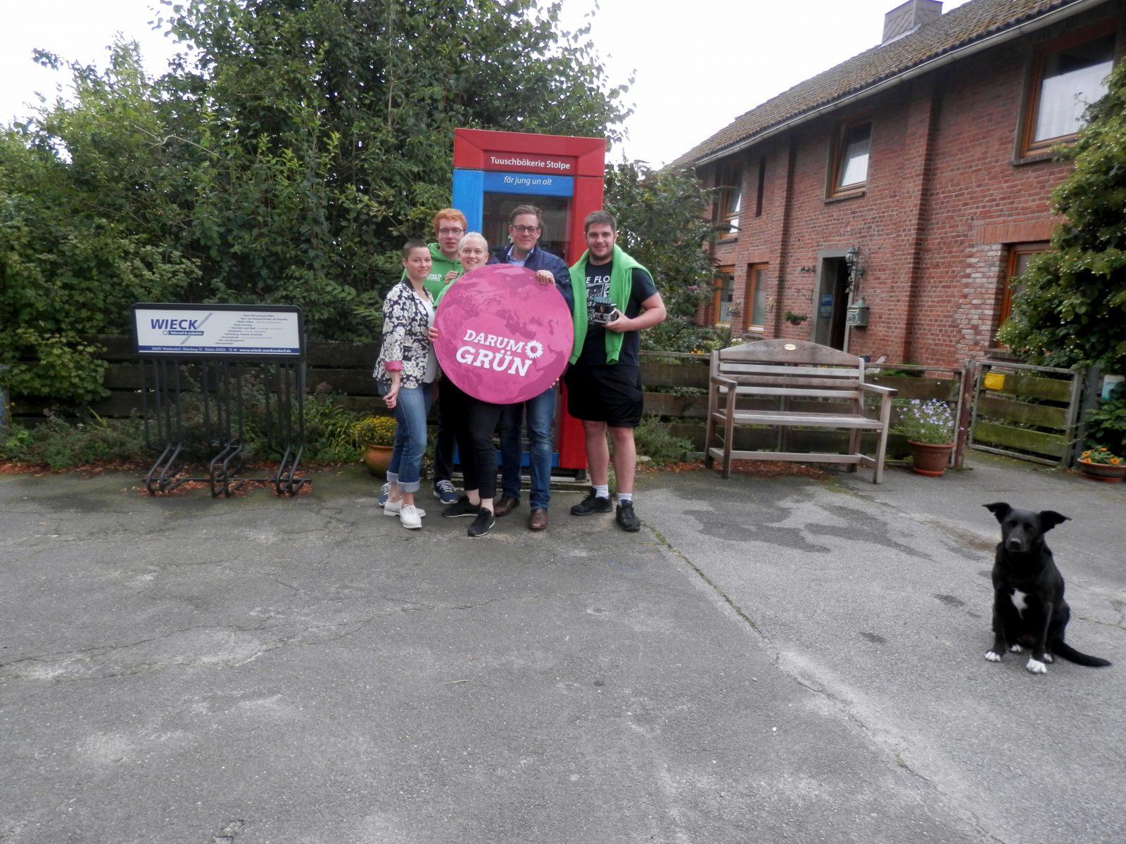 Morgens um 9 Uhr war Abschied angesagt – Konstantin von Notz und sein Team vor der Stolper Bücherzelle