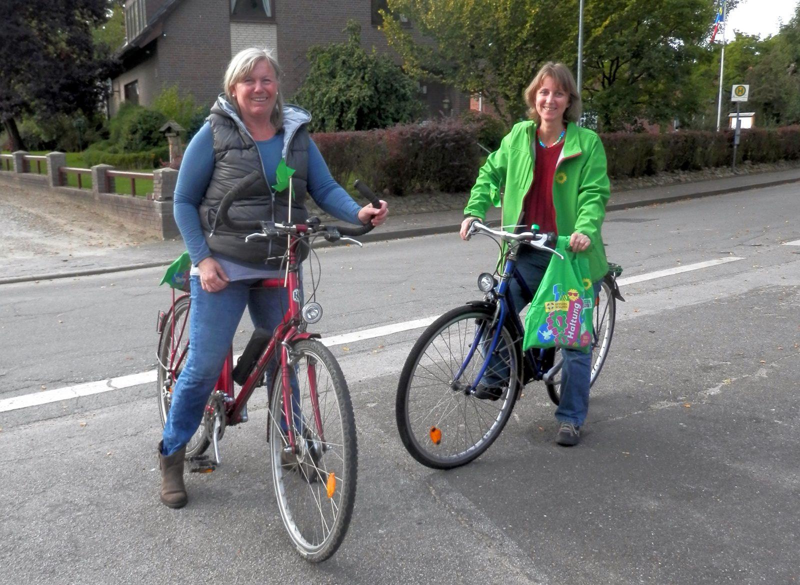 Hoffentlich ist alles gut gegangen. Unsere beiden Radfahrerinnen machten sich denn auch mit Fähnchen und Give-aways auf zurück nach Wankendorf, um die letzten Materialien zu verteilen. Danke Mädels! Danke Matthias! Es war schön!